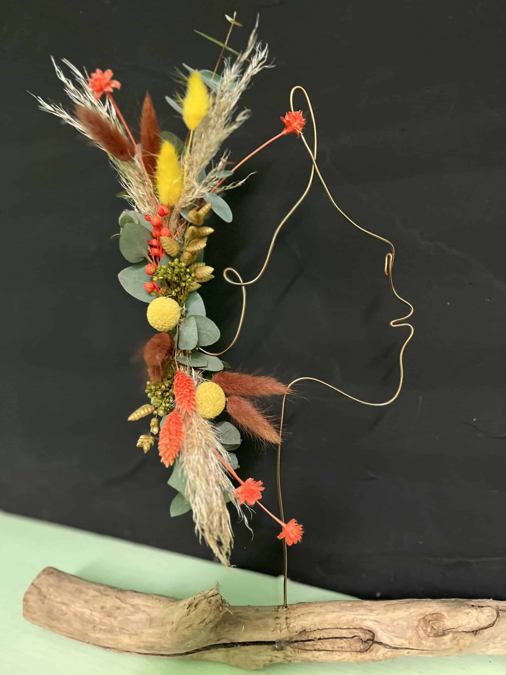 Création sur fil d’aluminium, fixé sur du bois.